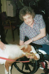 Once a month, Sundae goes to the local nursing home and the residents really enjoy her visits.