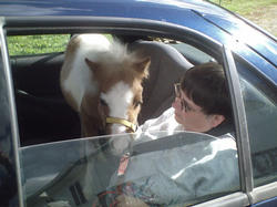 Sundae doesn't like to walk so much anymore. She would rather be chauffeured in the car. |